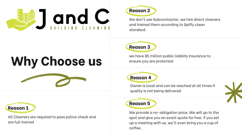 Contact us if you need a reliable business cleaning service. We'll come to your office, bring you a cup of coffee, and give you a free quote with no strings attached.